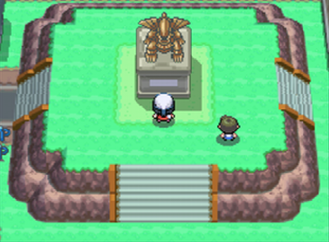 Auch in den Remakes scheint es diese Mischung beider Pokémon wieder in einer Statue zu geben - sie steht nun jedoch in einer dynamischeren Pose auf dem Sockel. Der prominente Platz in der Stadt ist jedoch geblieben.
