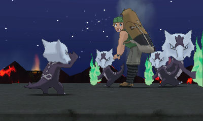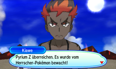 Pokémon, wenn ihr sie ansprecht. Lauft zur Bergspitze und sprecht mit Kiawe.