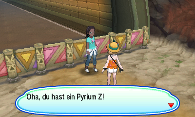 Sobald ihr die Mogelbaum ansprecht, verschwinden sie, da sie den Aquium Z bemerken. Der kleine Junge jubelt und aus der Richtung der Ohana-Farm kommen die beiden Ultraforscher zu euch. Mirin fordert euch erneut zu einem Kampf heraus. Dieses mal besitzt sie jedoch ein euch vollkommen unbekanntes Pokémon mit dem Namen Venicro.