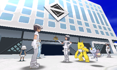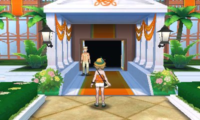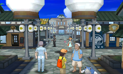 Chrys nimmt euch mit auf den Festival-Plaza und stellt euch die Kampfagentur vor. Eine Einrichtung, die sich im Schloss in der rechten oberen Ecke befindet. Ihr könnt euch dabei eines von drei Pokémon ausleihen und müsst mit zwei anderen Leuten zum Kampf antreten. Wenn ihr gewinnt, steigt ihr im Rang auf und erhaltet Item-Preise. Im Anschluss gibt euch Chrys die Maske von Mask Royale mit und bittet euch, sie Professor Kukui zu geben. Macht euch also auf den Weg den Berg hinunter.
