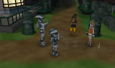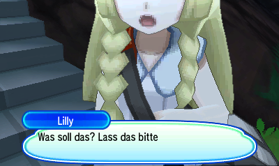 Nach dem Kampf kommt Lola und verrät euch, dass sie der Captain der nächsten Prüfung ist. Verlasst das Gebäude und ihr stoßt auf Lilly, die von Team Skull bedrängt wird. Natürlich stellt ihr euch einem Kampf.