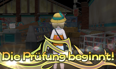Geht nun zu Lola, damit die Prüfung beginnt. Falls nötig könnt ihr davor auch nochmal zum Pokémon-Center fliegen, um eure Pokémon heilen zu lassen.