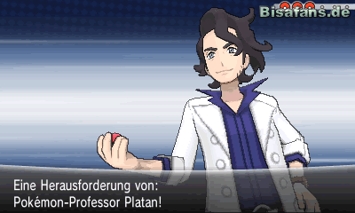 - Pokémon-Professor Platan mit Bisasam (Level 10), Glumanda (Level 10), Schiggy (Level 10)