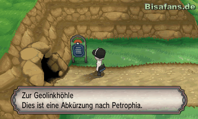 Kaum in der Geolinkhöhle angekommen, steht schon eine Frau in Weiß am Rand. Sie heilt deine Pokémon freundlicher Weise von den Kämpfen zuvor. Nutze die Chance, bevor du weiter gehst.