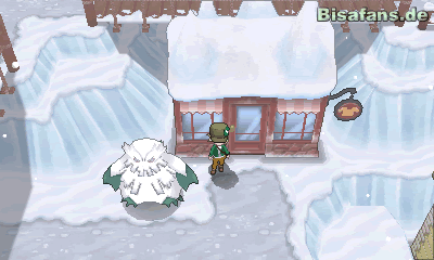 Gehe aus dem Pokémon-Center hinaus und dann nach oben. Im linken Haus befindet sich ein lilahaariger Junge, der Keldeo oder Meloetta eine besondere Attacke beibringen kann. Außerdem schenkt dir das Mädchen im blauen Anzug die TM08 Protzer, wenn du sie ansprichst. Wieder hinaus und dann nach unten und links bis du zu einem roten, mit Schnee bedecktem Haus kommst. Rechts neben dem Haus in der Tanne findest du ein X-Spezial wenn du die Tanne auswählst. Gehst du in das Haus, kannst du den älteren Mann ansprechen. Er bringt ausgewählten Pokémon die Attacken Aquahaubitze, Lohekanonade oder Faunastatue bei. Wenn du also eine sehr starke Attacke für dein Team suchst, bist du hier genau richtig. Verlässt du das Haus wieder kannst du links davon einen kleinen Abhang hinunter rutschen und dir das Item Top-Genesung ergattern. Gehe danach wieder an dem roten Haus vorbei nach oben über die Brücke in das nächste Haus. Dort kannst du bei der Frau ihm Wohnzimmer das Pokémon Caesurio gegen ein Pummeluff ertauschen. Nutze die Chance, wenn du ein Caesurio suchst! Gehst du danach aus dem Gebäude hinaus und über die Brücke rechts, kannst du mit dem Itemradar einen Eisbrocken am Rande des Weges finden. Gehst du in das nächste Haus und kannst dem Mann in der Mitte des Raumes ein Pokémon mit der Attacke Tami-Schild zeigen, schenkt dieser dir als Dank einen Beleber. Geh danach zur Arena der Stadt. Dort wird dir gesagt, dass der Arenaleiter gerade nicht da ist. Mach dich also auf ihn zu suchen, nachdem du links neben der Arena mit Hilfe des Itemradars einen Hyperheiler gefunden hast. Lauf nun in den Irrwald – der Eingang befindet sich unten links in der Stadt.