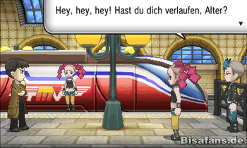 Es kommt genau, wie vermutet. LeBelle kann die Gauner zwar am Bahnhof stellen, doch ohne Kampf wollen diese das gestohlene Pokémon nicht herausrücken. Ein Glück, dass du im richtigen Moment eintriffst und dich mit den drei Punkern befassen kannst. Auch diese Kämpfe sind alles andere als schwer und auf dem Niveau wie zuvor bei den Gassenkindern. Mache dir in dieser Hinsicht also keine Sorgen und genieße lieber die lustigen Dialoge in dieser gesamten Geschichte.
