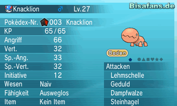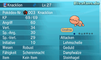 Neben den Statuswerten sollte man jedoch auch die Fähigkeiten und das Wesen im Auge behalten. Viele Pokémon erhalten beim Fangen eine von bis zu drei möglichen Fähigkeiten, von denen die ersten beiden per Zufall verteilt werden können. Die dritte Fähigkeit, eine sogenannte versteckte Fähigkeit, ist idR. nur auf Sonderwegen wie z.B. Downloadaktionen oder mit einem besonderen Item aus dem Kampfhaus in Batika zugänglich. Siehe dazu unseren Pokédex für die möglichen Fähigkeiten eines Pokémon.