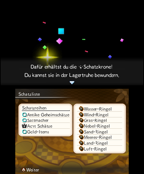 Wenn ihr alle Acht Schätze gesammelt habt, erhaltet ihr die Schatzkrone als Nachweis. Sie hat keinen Effekt, wird aber im Dungeon als Icon über dem Kopf des Trägers angezeigt.