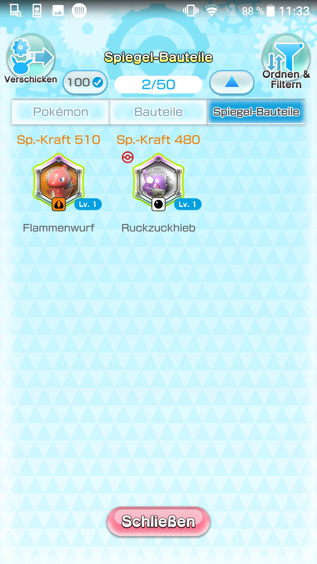 Eure Pokémon könnt ihr verstärken, indem ihr sie mit Bauteilen ausrüstet. Dabei ist zwischen sogenannten Standard-Bauteilen und Spiegel-Bauteilen zu unterscheiden.
