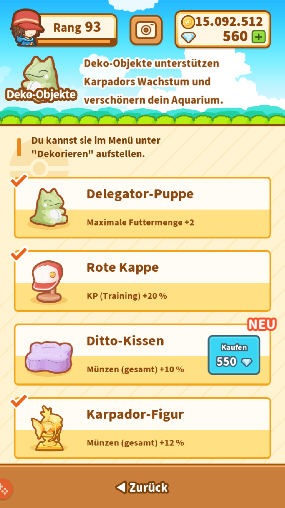 Das Deko-Objekt „Ditto-Kissen“, welches mit dem dritten Update in Karpador Jump hinzugefügt wurde, muss zunächst freigeschaltet werden, um es kaufen zu können. Wie das funktioniert erklären wir euch hier.