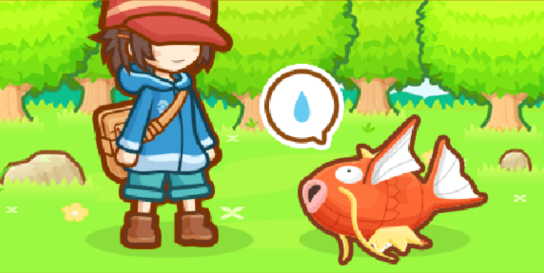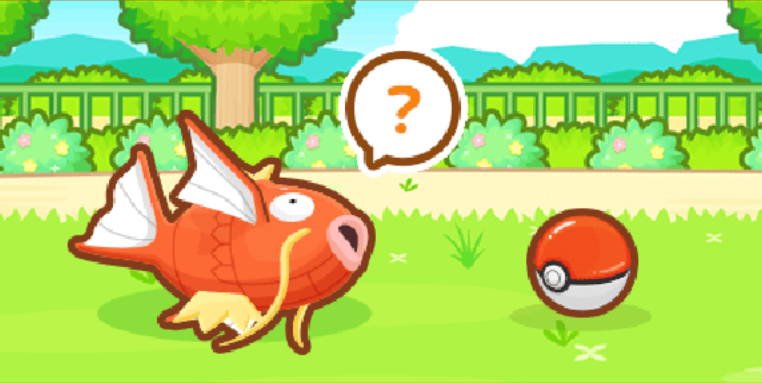 Karpador findet nach dem Training einen Pokéball auf dem Boden. Ihr habt die Wahl zwischen dem genaueren Betrachten, oder dem ignorieren. Ignoriert ihr den Ball, erhält euer Karpador KP. Schaut ihr euch den Ball genauer an, habt ihr die Chance auf