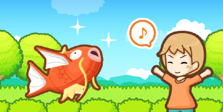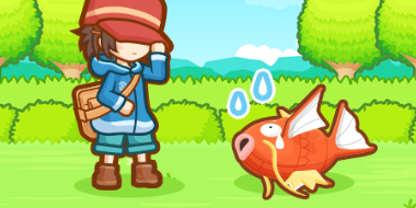 Ihr findet einen Köder an einer Angel. Ihr habt die Wahl, ob Karpador an diesen anbeißen soll, um die Beere zu essen, oder es zu lassen. Ignoriert ihr die Angel, erhält euer Karpador KP. Lasst ihr Karpador die Beere essen, habt ihr die Chance auf mehr KP. Mit Pech kann es jedoch auch passieren, dass die Angel eingezogen wird, was dazu führt, dass euer Karpador KP verliert .