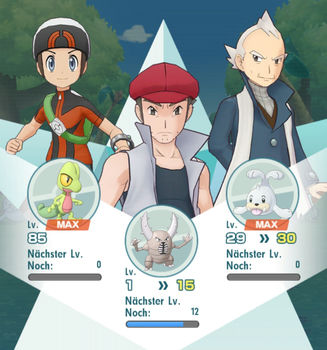 Hierbei ist das Leveln durch Kämpfe gegen andere Trainer durch die Stufen der Hauptgeschichte und den Zusatzstufen möglich, da diese auch mehrmals bestritten werden können. Nach einer erfolgreich abgeschlossenen Stufe erhält das gesamte Team eine bestimmte Anzahl an Erfahrung, die steigt, je später die Stufe in der Hauptgeschichte vorkommt. Wollt ihr mit Hilfe der Stufen euer Team leveln bietet es sich an eine besonders starke Einheit, sowie zwei Gefährten die ihr leveln wollt, in euer Team zu holen und so direkt zwei Einheiten verstärken zu können.