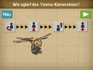 Schaut euch im Studio um nachdem ihr auf Herrn Graham gestoßen seid. Sprecht mit allen Personen im Studio und geht anschließend zurück zu Roger. Er schlägt euch vor das Yanma-Kamerateam zu lenken, während ihr auf Meiko wartet. Lauft rechts aus dem Studio heraus und geht in den Raum ganz unten links hinein, um mit dem Steuern der Yanma zu beginnen. Prägt euch die Schrittfolge von Pikachu ein und startet die Aufnahme. Wie ihr die Kamera-Winkel einsetzt ist euch überlassen.