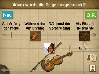 Informiert Karina darüber, dass die Geige ausgetauscht wurde und redet dann mit Pikachu. Mit Hilfe der Ermittlungen könnt ihr nun herausfinden in welchem Zeitabstand die Geige ausgetauscht wurde.