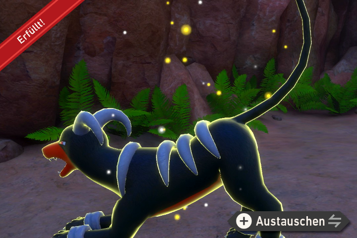 - Werft eine Lumina-Kugel auf das Hundemon das vor den Ruinen am Anfang steht und macht ein Foto, wenn es sich streckt.