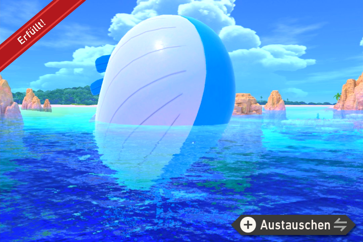 - Fahrt bis zu Wailord und werft dort dem Pelipper, das am dichtesten an der Wasseroberfläche ist, einen Samtapfel zu. Macht ein Foto in dem Moment in dem es den Apfel aufnimmt.
