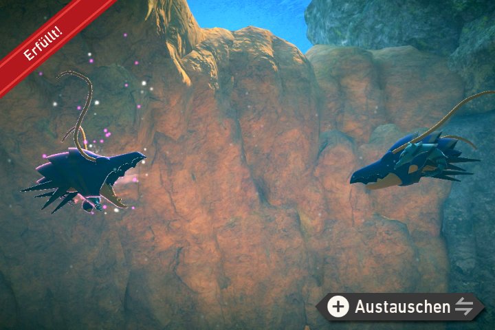 - Fotografiert die zwei Iscalar direkt am Start, wenn sie aus dem Wasser springen. ODER Lentil-Meeresgrund - Meeresgrund: Nehmt den Alternativweg. Macht ein Foto von dem dann auftauchenden Iscalar vor dem ersten Lampi und macht ein Foto, während es eine Attacke auf Lampi einsetzt.