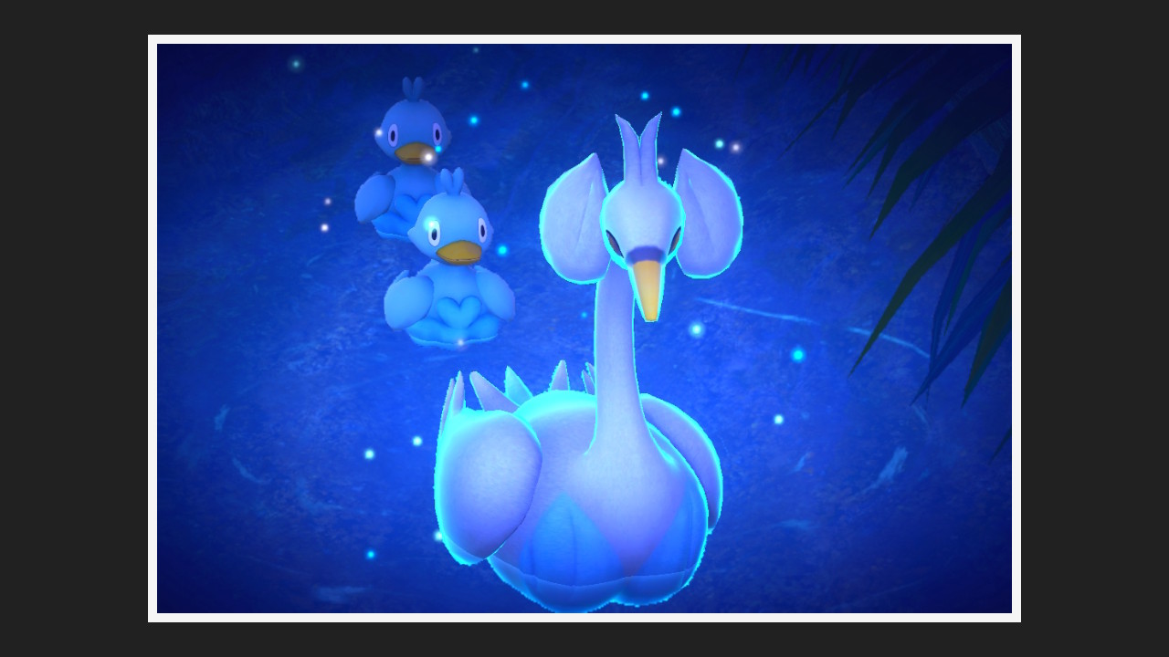 - Floreo-Naturpark - Park (Nacht): Beobachtet, wie leuchtende Swaroness auf dem großen See landen und spielt anschließend Musik, damit sie wieder los fliegen. Die fliegenden Pokémon können dann fotografiert werden.