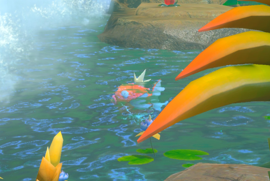Für den zweiten Weg ist müsst ihr den Weg in der Nacht-Version Dichter Dschungel (Dschungel (Tag)) freischalten. Vor dem Teich mit den Morlord kommt hohes Gras mit einer Kristallblume. Werft die Kristallblume mit einer Lumina-Kugel ab. Es erscheinen Fußspuren die ihr scannen könnt. Es erscheint dann der alternative Weg zur Auswahl. Der Weg führt auf der anderen Seite des Teiches herum. Seid ihr einmal den Weg in der Nacht-Version gefahren, könnt ihr diesen auch in der Tag-Version finden.