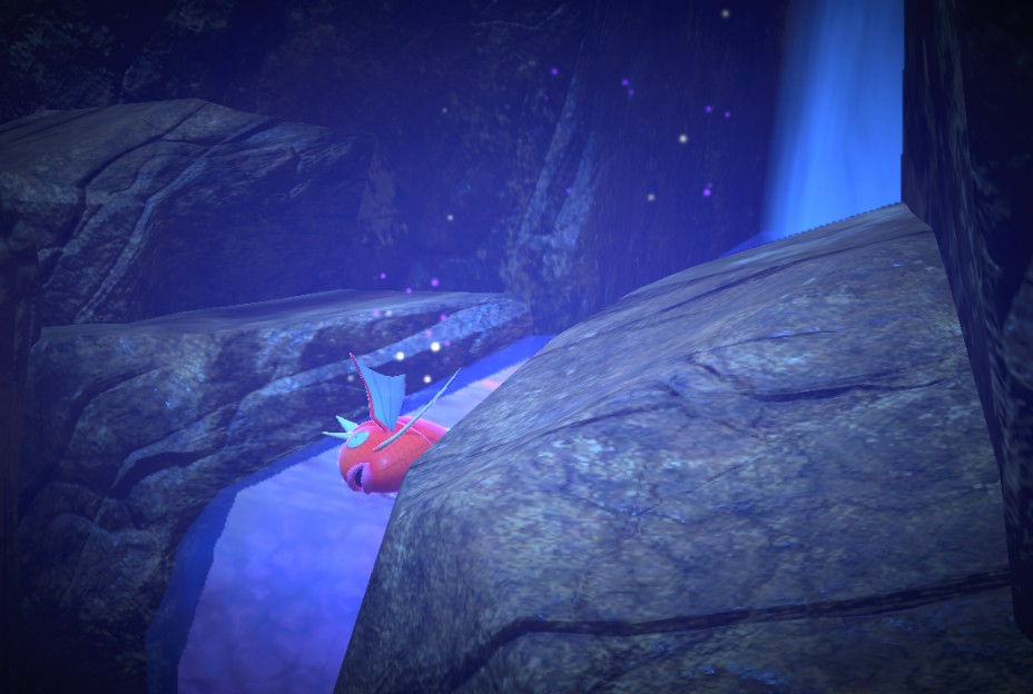 Der dritte alternative Weg kann gefunden werden, wenn man in der Schlucht den linken weg nimmt. Dort wird links an der Wand, wenn man den Tunnel betritt, ein Iksbat an der Wand schlafen. Weckt dieses mit einer Lumina-Kugel auf. Spielt dann die Musik ab, damit Gengar ein zweites Iksbat an der Decke aufweckt. Fahrt dann bis zum Ende des Tunnels und nehmt dort, wo die Rameidon stehen, den dort nun verfügbaren alternativen Weg.