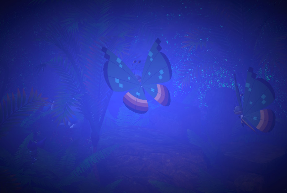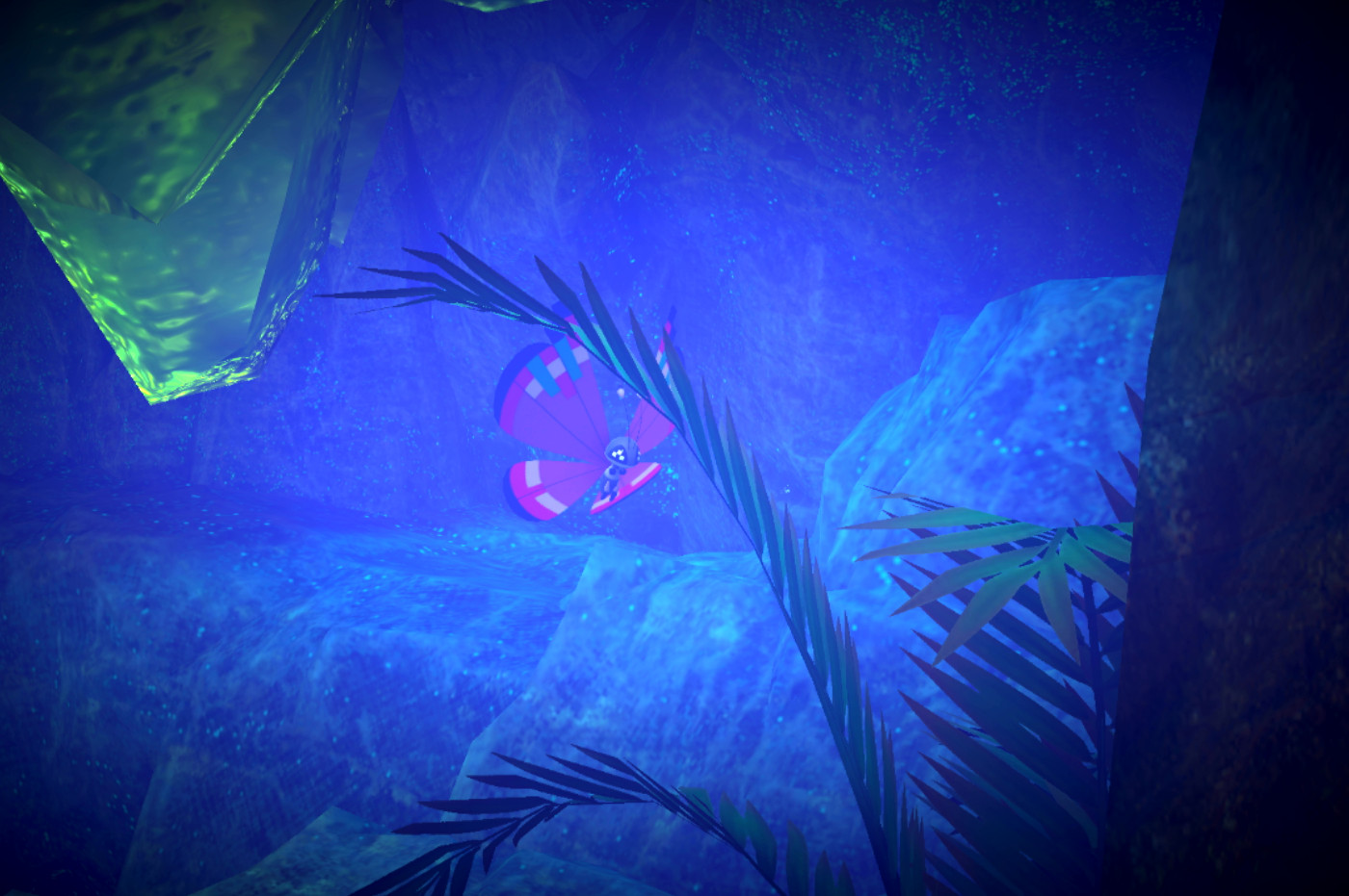 Nehmt den Weg in die Kristallkammer und fahrt dort bis zu dem Teil mit den Pflanzen. Dort fliegen Vivillon durch die Luft.