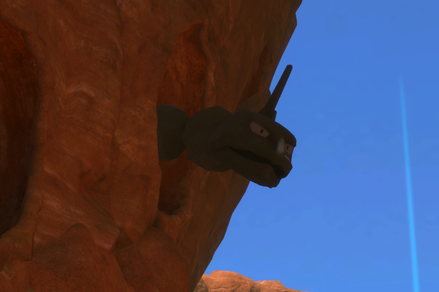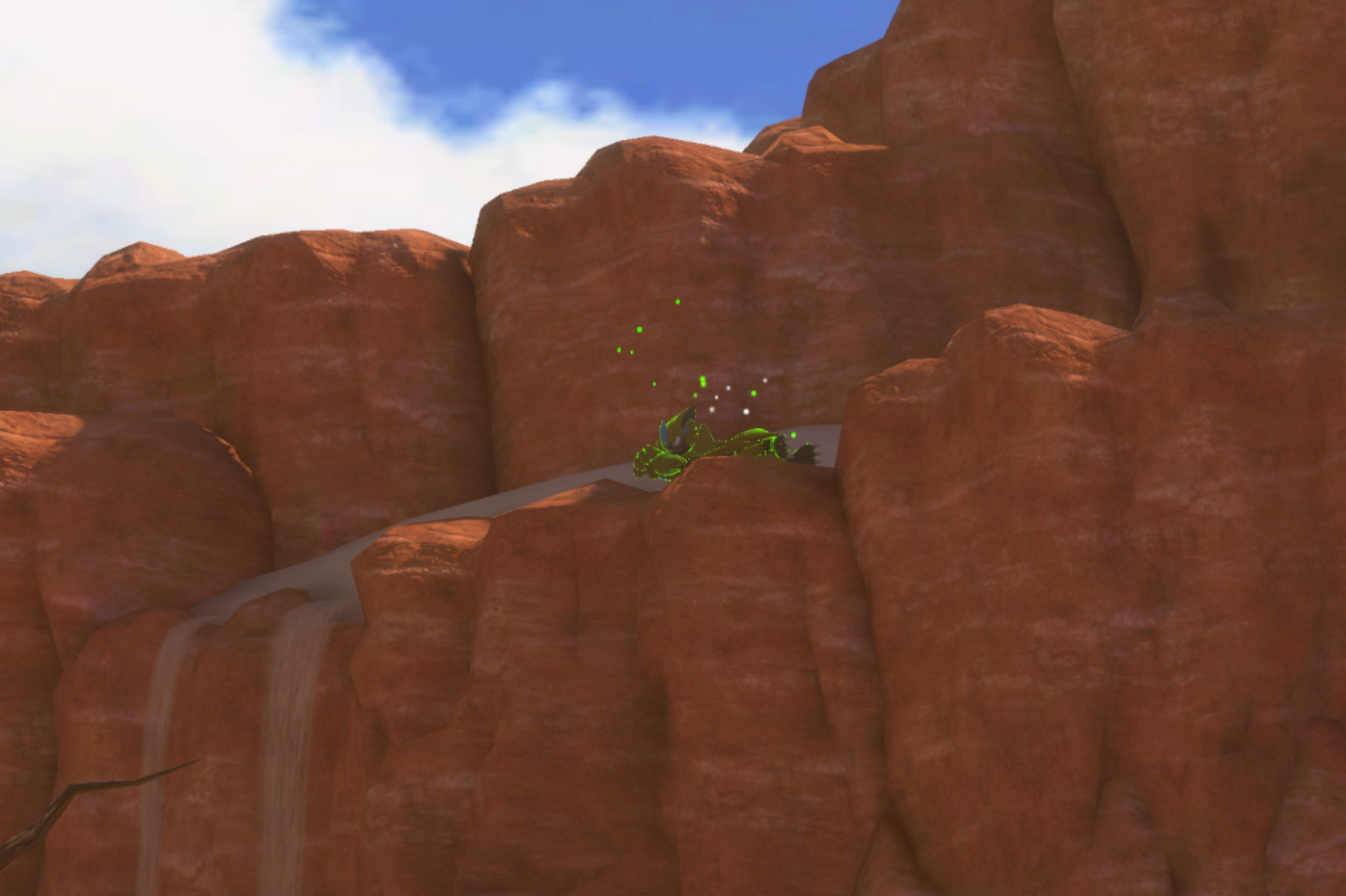 Auf der Klippe rechts am Start des Gebiets. Kann mit einem Apfel beworfen werden, um es aufzuwecken.