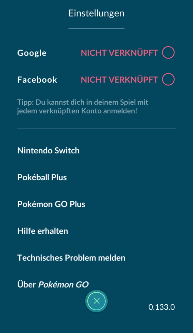 Pokéball unten in der Mitte, um das Menü zu öffnen. - Wählt oben rechts „Einstellungen“.