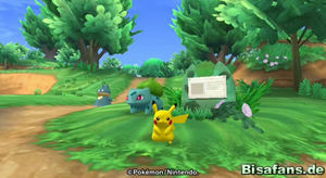 Gleich am Anfang der Grünzone siehst du Haspiror und Endivie. Diese empfehlen dir nach oben bis zum Schild zu gehen, wo es ein Minispiel geben soll. Tue dies und gehe bis du Bisasam und sein Minispiel "Schüttelsprint mit Bisasam" findest. Allerdings weigert sich Bisasam zuerst dich spielen zu lassen, da der Chef der Grünzone, Bisaflor, dies verboten hat. Weil du es bist, macht Bisasam aber eine Ausnahme, so dass du letztlich doch spielen darfst.