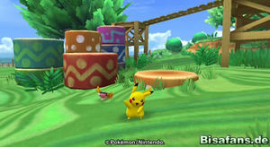 Hast du dies geschafft, lernst du Haspiror kennen, die dir erklärt, wie du mit Pokémon reden kannst (Button 2) und wie du deinen Donnerblitz (Button A) einsetzen kannst. Wecke nach der Erklärung von Haspiror das Relaxo mit einem Donnerblitz auf. Beim Zielen hilft die Button B! Gehst du danach das letzte Stückchen des Weges nach oben, triffst du auf Plaudagei, der dir das PokéPark-Album überreicht, in dem nun alle deine Freunde gelistet werden. Freunde sind in PokéPark etwas sehr wichtiges und Plaudagei wird hier zu deinem ersten Freund. Das Album und das Menü zum Speichern kannst du mit Button + aufrufen. Danach verlässt du das Einleitungs-Gebiet nach oben in die Grünzone.