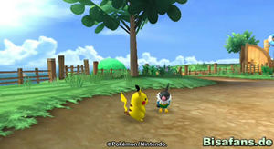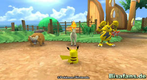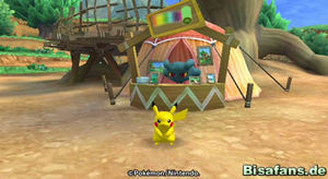 Nach dem Betreten des Treffpunkts, gibt es neue Tipps von Plaudagei. So ist der Treffpunkt zentral gelegen zwischen den fünf Zonen des PokéParks. Hier lernst du auch einige wichtige Pokémon kennen, die dir noch öfters hilfreich sein werden. Auch Endivie wird dich in der Mitte des Platzes ansprechen. Sie will das Baumhaus ausbauen, wenn du mehr Freunde gewinnst.