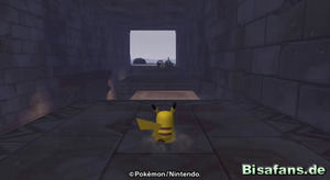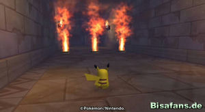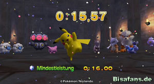 Die Mindestleistung beträgt 16 Sekunden. Ziel des Spieles ist es so schnell wie möglich das Ziel zu erreichen. Im Prinzip funktioniert dieses Spiel wie das von Bisasam und Zwirrfinst, doch musst du hier bei Hindernissen den Button 2 drücken um diese zu überspringen. Schlapor, welches in der Gegend hier zu finden ist, ist für dieses Minispiel besonders gut geeignet. Pikachu und Endivie sind etwas langsam um die 16 Sekunden zu knacken. Man kann es mit den beiden zwar auch schaffen, doch darfst du dann gegen kein Hindernis krachen! Man braucht 1-2 Spiele um das Timing zum Springen herauszufinden, da man recht früh vor dem Hindernis drücken muss. Beachte auch, dass dein Tempo nach erfolgreichem Hürdensprung immer steigt.