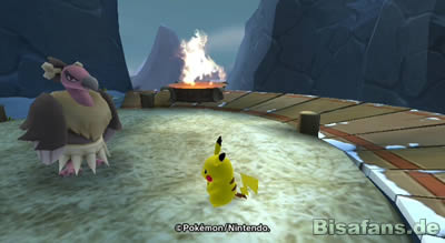 - Mit Demeteros können wir nun zurück ins Labor. Ich machte aber einen kleinen Umweg über Reshirams Schrein. Dieser ist über eine Erhöung erreichbar (da ist auch eine Wahrweiße Feder und eine große Kiste). Reshiram kannst du rufen, wenn du mindestens 20 Wahrweiße Federn hast. Das sollte an dieser Stelle kein Problem sein. Reshiram wird dich mit einem Kampf prüfen. Kein ganz einfacher Kampf mit Pikachu, aber zu schaffen. Weiche den Attacken eventuell durch einen Sprung aus, wobei das klassische Anrempeln hier auch funktioniert. Du kannst im Kampf sogar auch Unterstützng rufen, wenn du es brauchen solltest. Reshiram ist nun unser Freund und gibt uns seinen Segen für die Rettung von Darkrai. Wir brauchen allerdings auch noch den Segen von Zekrom, weshalb es nun zum Laboratorium geht...