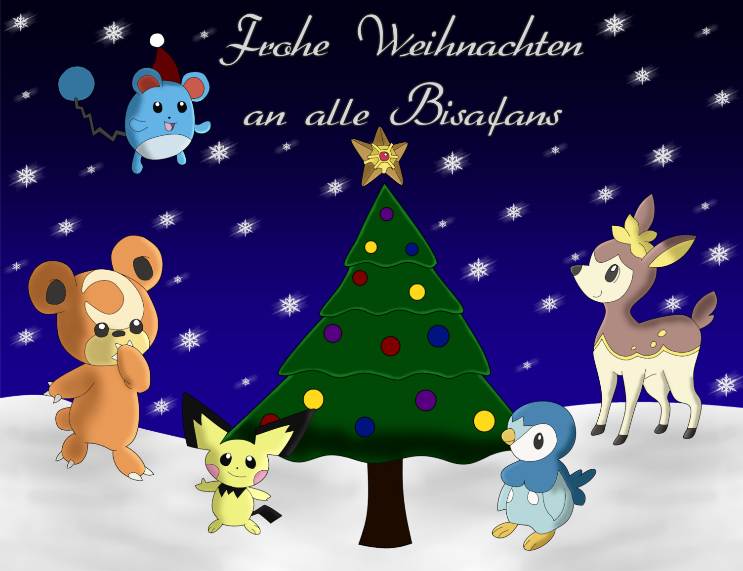 Lux-Maus: „Alola und frohe Weihnachten! Und wenn sich das Wetter wieder mal eher den neuen Editionen als der Jahreszeit anpasst, wünsche ich allen Fans viel Spaß beim Spielen. :-)“