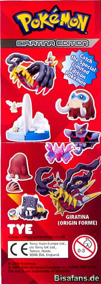 Gleich zu Beginn des neuen Jahres 2010 ist von Tomy eine neue Pokémon-Serie erschienen. Der Titel lautet Pokemon Giratina Edition – Catch the Special Limited Edition Pokemons (Sammle die speziellen limitierten Pokemon der Edition). Die Serie besteht aus den folgenden Pokémon: