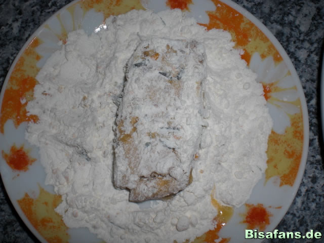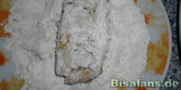 2. Auf einen separaten Teller mischt ihr das Mehl mit etwas Furikake zusammen. Nun taucht ihr die Tofuscheiben in das Furikake-Ei, lasst es etwas abtropfen und wälzt es im Anschluss im Furikakemehl. Erhitzt nun das Öl in der Fritteuse oder in der Pfanne.