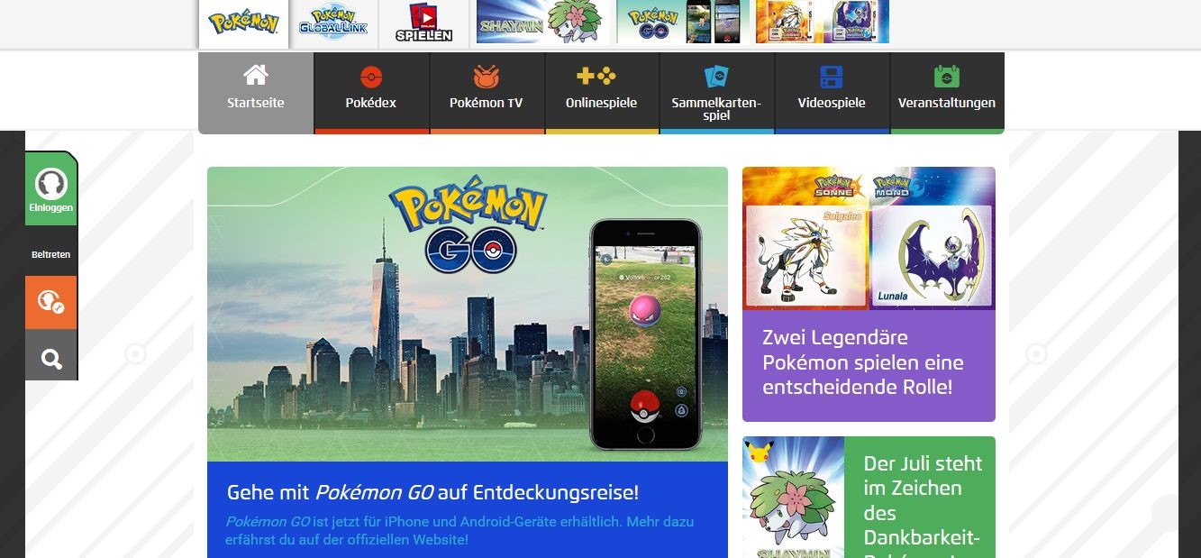 Die Sprach- und Angebotsvielfalt der offiziellen „Pokémon“-Website