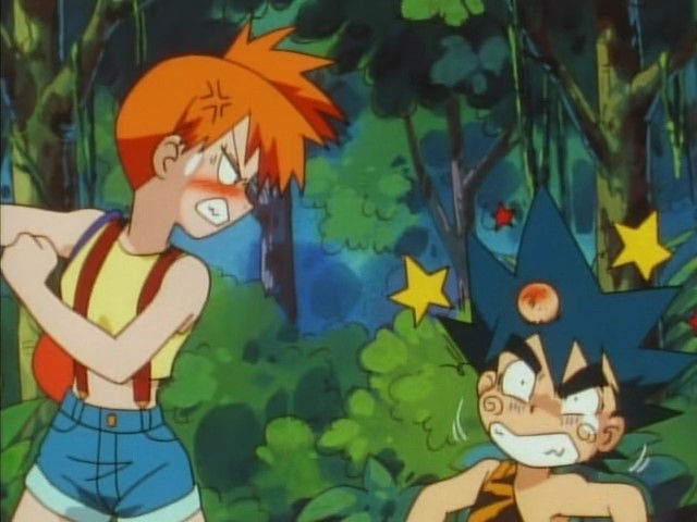 die Tommy nun fixiert ist. In der japanischen Version fragt Misty daraufhin „Nani-yo?“ („Was ist los mit dir?“), worauf Tommy mit den