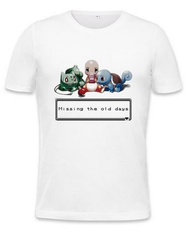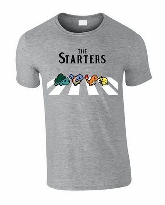 Ähnlich tun dies zwei weitere Shirts. Ein Shirt mit der Aufschrift „I‘ m Going to the Gym“ (siehe Abbildung 32) zeigt die bereits erwähnten Orden und verschiebt die Semantik des englischsprachigen Begriffs im Sinne des „Pokémon“-Franchises (vom „Gym“-Fitnesscenter zur „Gym“-Kampfarena). Das in Abbildung 33 zu sehende Kleidungsstück zielt ganz bewusst auf den Beginn des Franchises an. „University of Kanto – Established 1996“ ist darauf zu lesen. Erst der Faktor Zeit und die Verbreitung dessen, was das „Pokémon“-Franchise auszeichnet und somit den Begriff „Kanto“ (wie weiter oben erwähnt, ist „Kanto“ der Name der Spielumgebung im ersten „Pokémon“-Videospiel) mit einer gewissen Bedeutung auflädt, macht dieses kommerziell-parodistische Spiel meines Erachtens möglich. Zuletzt zeigen bedruckte Kleidungsstücke, dass insbesondere die drei Starterpokémon der ersten Generation Gegenstände derartiger popkultureller Referenzen sind. Das „The Starters“-Motiv (siehe Abbildung 34) spielt eindeutig auf die Covergestaltung des Albums „Abbey Road“ (1969) der „Beatles“ an. Auf einem anderen Shirt werden die Starterpokémon mit spezifischen Titeln wie „The Flash“ oder „The Bubbly“ versehen, was eine Referenz auf die Comic-Superhelden „The Fantastic Four“ darstellt (siehe Abbildung 35). Am vielleicht kreativsten gelingt dem letzten hier thematisierten Motiv eine nostalgische Referenz. Die drei Starterpokémon sitzen beisammen, eines von ihnen spielt eines der „Pokémon“-Videospiele auf dem Game Boy. Darunter ist der Schriftzug „Missing the old days“ zu sehen (siehe Abbildung 36). Der Schriftzug entspricht dabei exakt der Schriftart, die im Spiel zu finden ist. Solch ein Shirt-Motiv wäre meines Erachtens im Jahre 1999 oder 2000 kaum sinnvoll gewesen. Der Nostalgiewert und auch der popkulturelle Witz sind emergente Phänomene, von denen das Franchise erst heute ob seiner kulturellen Relevanz zehren kann und an seine Fans – sowohl im Westen als auch im Osten – weitergibt.