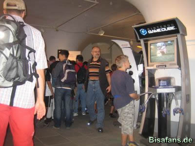 Danach machten wir uns sogleich auf uns eines von den zehn Jubiläums-Pokemon zu holen. Meine Freundin holte sich Latios, Sylvia sich Lugia und ich mir Latias. Es folgte die T-Shirt-übergabe (süßes babyblau o.O) und ein kurzes Interview. „Wie heißt du? – Welches Pokemon hast du dir geholt? Wie viele Pokemon hast du schon?“`-blablabla- ... Jedenfalls verzog sich Ines zu den GameCube-Probezockern und ich ging rum und schoss Fotos. Stündlich gab es ein Quiz mit nooby Fragen (wie sollte es auch anders sein -.-) „Welches Pokemon ist auf der Blattgrünen Edition abgebildet? – Auf welchem Level entwickelt sich Abra? – Was bedeutet VM/TM?“ und so was halt. Ines und ich versuchten erst garnicht es zu versuchen, denn die meisten kleinen Kiddies dort übertönten uns sowieso. Als Preis gab es dann eine GBA-Tasche.