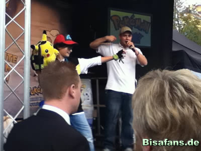 Mein Freund stellte sich die ganze Zeit für mich an und wen er am Ende der Schlange ankam, kam ich dazu ;) Diesmal brauchte man nur an der Anmeldung und einem der drei Spiele anstehen, um das diesmalige Extra, den Trainer-Ausweis, zu bekommen. Neu war die Gewinner-Idee des Ideenwettbewerbes als neue Aufgabe. So waren ich und mein Freund Stefan mit der Ansteherei ziemlich schnell fertig und konnten einmal einen Blick auf die Bühne werfen, wo viele Quiz-Shows und andere lustige Sachen mit dem bekannten Moderator Oli P. stattfanden.