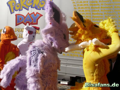 Etwas später hatte Marc mitten auf dem Platz seine, von der AnimagiC bekannte, Strandmuschel aufgebaut, um die sich eine Reihe anderer Pokémon-Fans niederließen. So tauschte man Con-Hons aus und ich konnte auch einige Animexx-User kennenlernen.