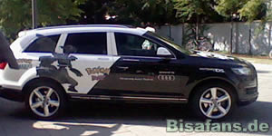 Das Pokémon Auto und der silberne Caravan - auf letzterem stehen
