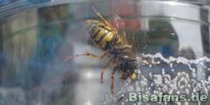 Das gefangene Bibor schleckt die letzten Milchshake-Reste auf.