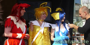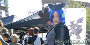 Neben den üblichen Fotos, die ich hier und da schoss, schaute ich auch immer wieder auf meinen 3DS, der an diesem Tag wohl über 150 neue Begegnungen machen konnte. Es war dann wohl so gegen vier, als der Cosplay-Wettbewerb startete. Wo an anderen Tourorten nur 2-10 Kostümierte auftauchten, kamen hier sage und schreibe 29 Cosplayer auf die Bühne, was es den Juroren nicht leicht machte. Meine Favoriten stimmten zwar nicht mit den tatsächlichen Gewinnern überein, aber was soll´s.