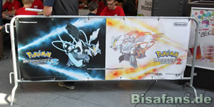 Mehrere Schilder wiesen auf den Pokémon Day bei den Hallen am
