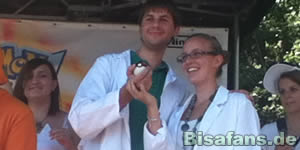 Echnatoll und Oli auf der Bühne beim Kostümwettbewerb.