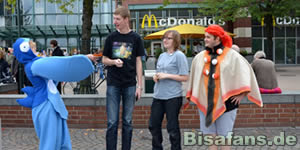 Am fand das Pokémon Day Tourfinale 2012 in Oberhausen statt und begeisterte auch dort zahlreiche Fans. Keno vom alten BisaCast war so freundlich einen ganzen Schwung an Fotos bereitzustellen, die untenstehend betrachtet werden können. Details zum Bühnenprogramm und einige Hintergrundinfos haben wir im Pokémon Day 2012 Spezial bereitgestellt! Siehe auch den zweiten Teil dieser Fotogalerie zum Pokémon Day 2012 in Oberhausen, der vor allem weitere Cosplayer zeigt! Weitere Eindrücke mit 27 Fotos gibt es auch von Kratzean-Karnimani in Animexx Bildergalerie!