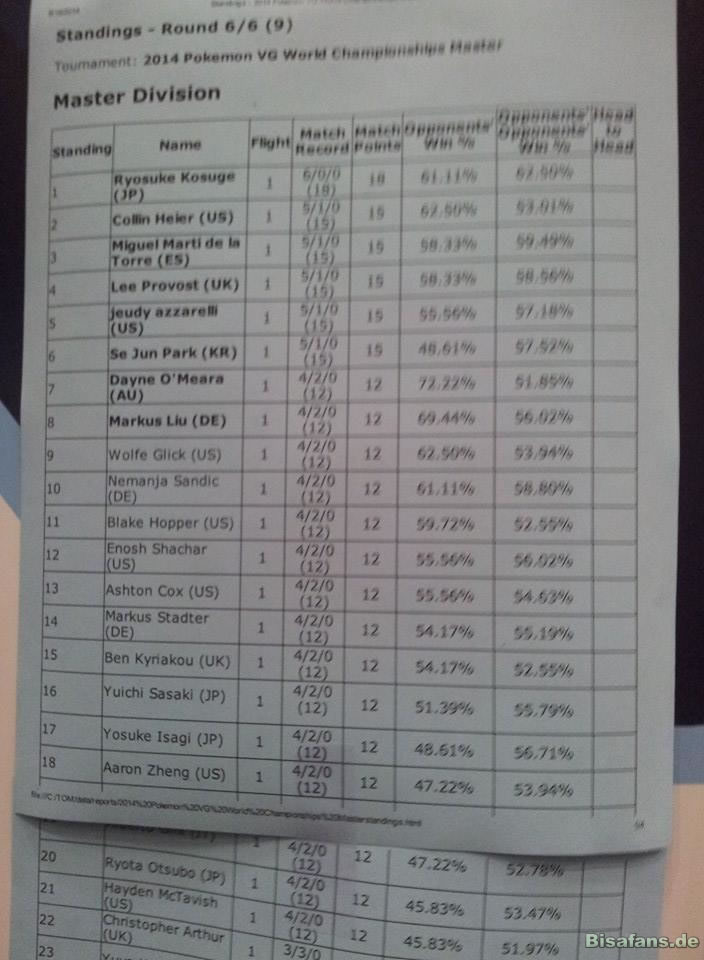 Mein Gegner aus Runde 2 ist der amtierende Vizemeister der USA und somit auch kein zu unterschätzender Gegner. Sein Team ähnelt dem, das er bei der US-Meisterschaft eingesetzt hat sehr und so ahne ich schon, womit ich es vielleicht zu tun bekommen könnte.